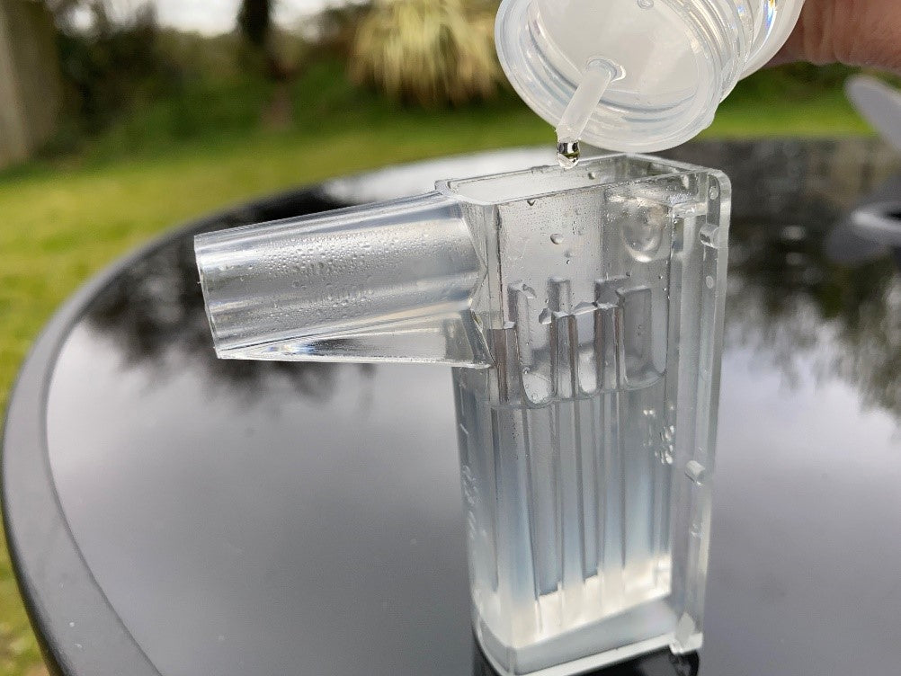 2. Next, pour about 6-8 drops of the Native liquid into the hole at the top of the resistor to prime the part for use in the Apisolis.