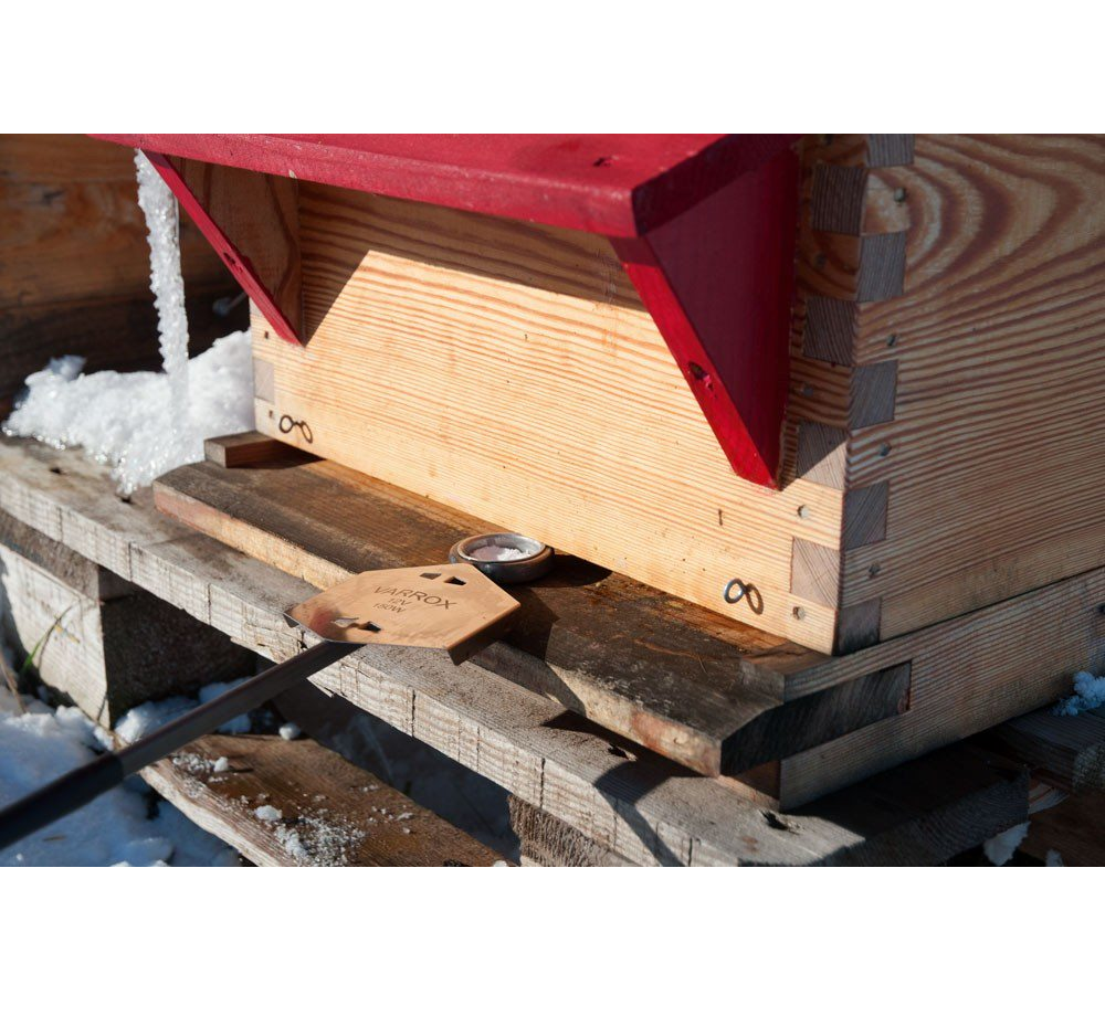 - Pass the Varrox vaporizer into the bottom of the hive through the flight opening until the support plate disappears.